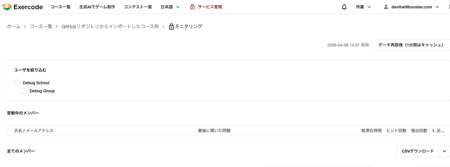 - 組織やグループで表示対象の受講者を絞り込む